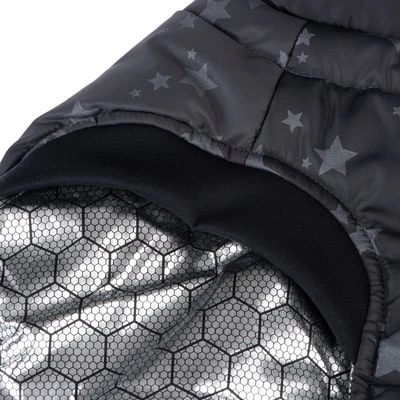 Abrigo para perros de material hidrófugo, con trabillas en las patas y cuello alto, protege del mal tiempo, reflectante, con estampado de estrellas, color: negro/gris