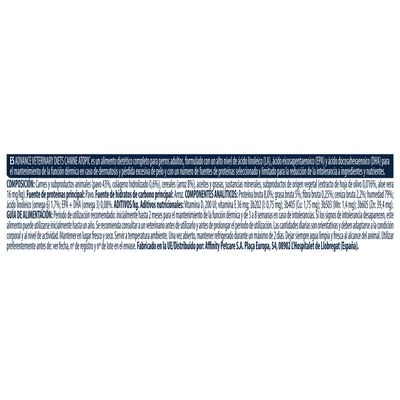 Advance Atopic Veterinary Diets incluye pavo y arroz de fácil digestión como ingredientes esenciales. Los ingredientes vegetales, como el aloe vera y el extracto de hoja de olivo ayudan a la protección cutánea. Además, se prepara con componentes seleccionados que aportan ácido linoleico y ácidos grasos omega.