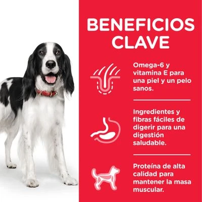 Hill’s Adult Science Plan es una comida húmeda para perros adultos hasta los 5 años (razas grandes) o 7 años (razas pequeñas).