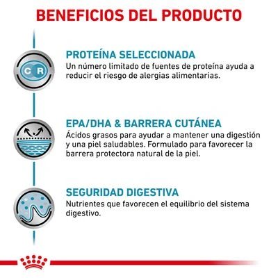 - Alimento dietético completo para perros para reducir los síntomas de intolerancia a materias primas y nutrientes.